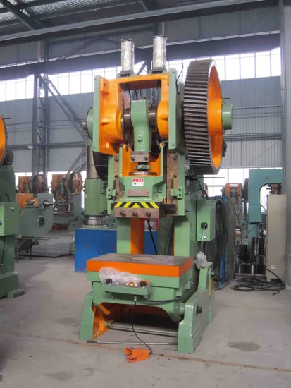 The body of J23 series press is made of high-strength cast iron. The slipper uses V-type guide rail and turnkey rigid clutch. There is a crushing-type protector mounted on the slipper, which may protect the whole machine as it overloads. Operation of electrical equipment is controlled by button or footswitch. The electrical equipment may carry out single and continuous operation.